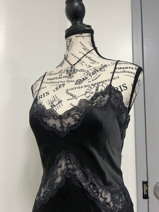 Y2K Victoria's Secret Silk & Lace Slip Dress - Black (S)