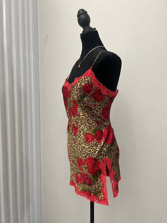 Y2K Victoria's Secret Satin & Lace Slip Dress - Floral Leopard (M)